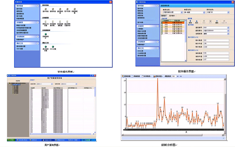 可根據(jù)用戶的設(shè)置,開關(guān)相應(yīng)設(shè)備,自動轉(zhuǎn)入節(jié)能運行模式,根據(jù)用戶的要求對整個采暖季的運行數(shù)據(jù)進行采集分析,生成能耗分析圖。