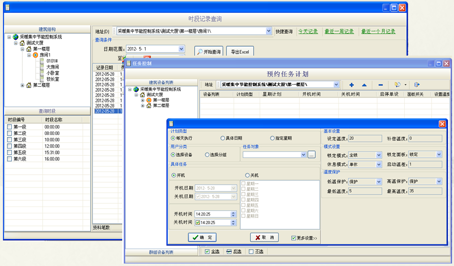 軟件系統(tǒng)依據(jù)用戶的各種預(yù)定義功能以及檢測到溫控設(shè)備的運行狀態(tài)進行邏輯比較,自動實現(xiàn)溫度、啟停等各種節(jié)能控制。